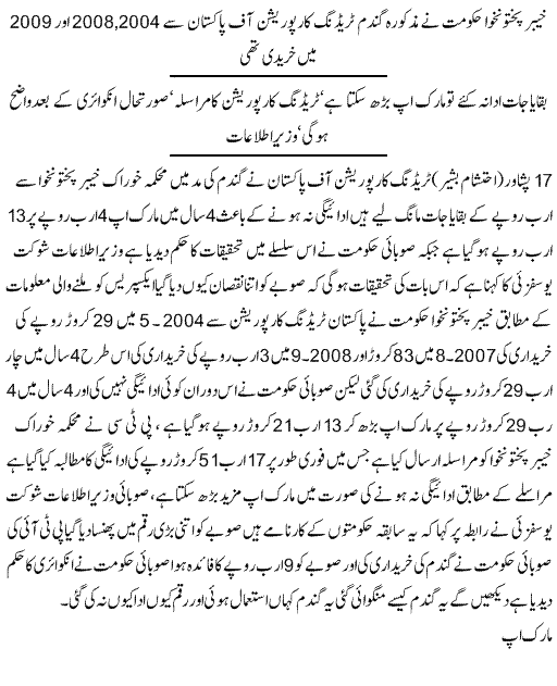 خیبر پختونخواہ – 4 ارب 29 کروڑ کی گندم پر 13 ارب 21 کروڑ کا مارک اپ تحقیقات شروع، یہ گندم ٹی سی پی سے تین سالوں میں خریدی گئی تھی