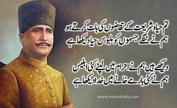 HomeUrdu Poetry Tum haya-o-shariat ke taqazoon ki baat karte hoo, hum nay >> byAdmin —April 16, 2015 0 تم حیاو شریعت کے تقاضوں کی بات کرتے ہو ہم نے ننگے جسموں کو ملبوس حیا دیکھا ہے دیکھے ہیں ہم نے احرام میں لپٹے کئی ابلیس ہم نے کئی بار مے خانے میں خدا دیکھا ہے ✓❀شیئر کریں✓ ٹیگ کریں✓کومنٹ کریں ❀